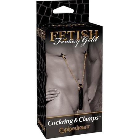 Эрекционное кольцо с зажимами на соски "Fetish Gold" металл