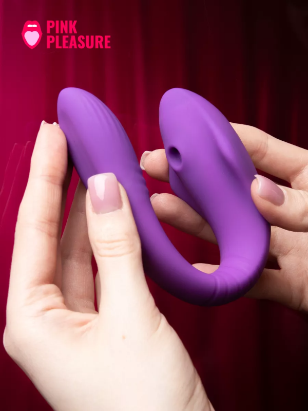 Вибратор для двоих с вакуумным стимулятором "Pink Pleasure" на дистанционном управлении, фиолетовый