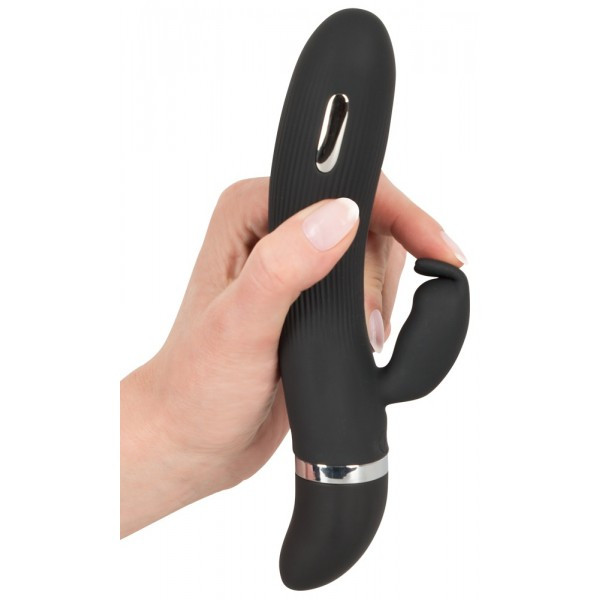 Рельефный ствол вибратора со слегка изогнутой головкой попадает точно в цель - на G-точку. А, 2 металлические пластины по краям головки, при помощи электроимпульсов воздействуют на лоно! Клиторальный стимулятор в виде милого зайца, в это время ласкает клитор делая возбуждение максимальным!