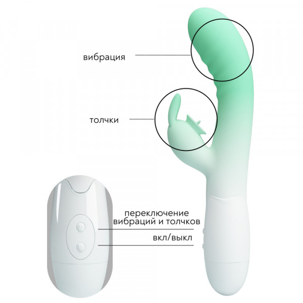 Вибратор с клиторальным стимулятором "Pretty Love Cerberus" мятный градиент